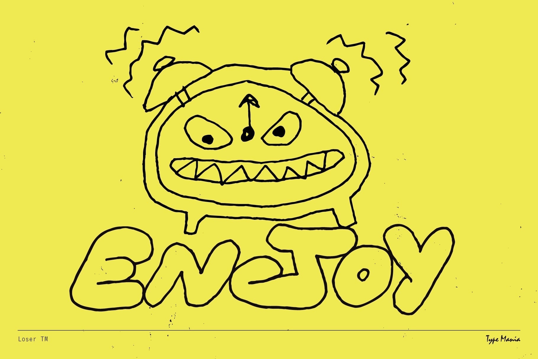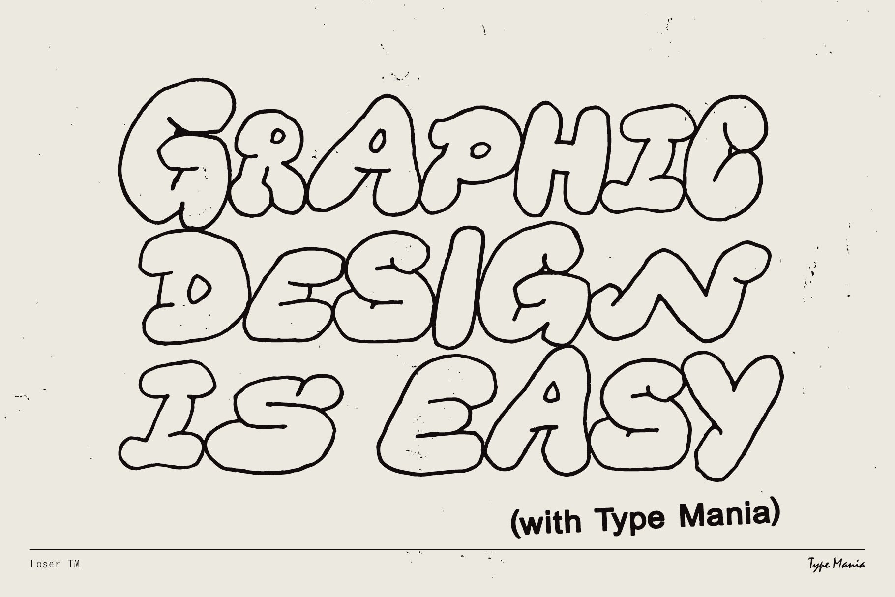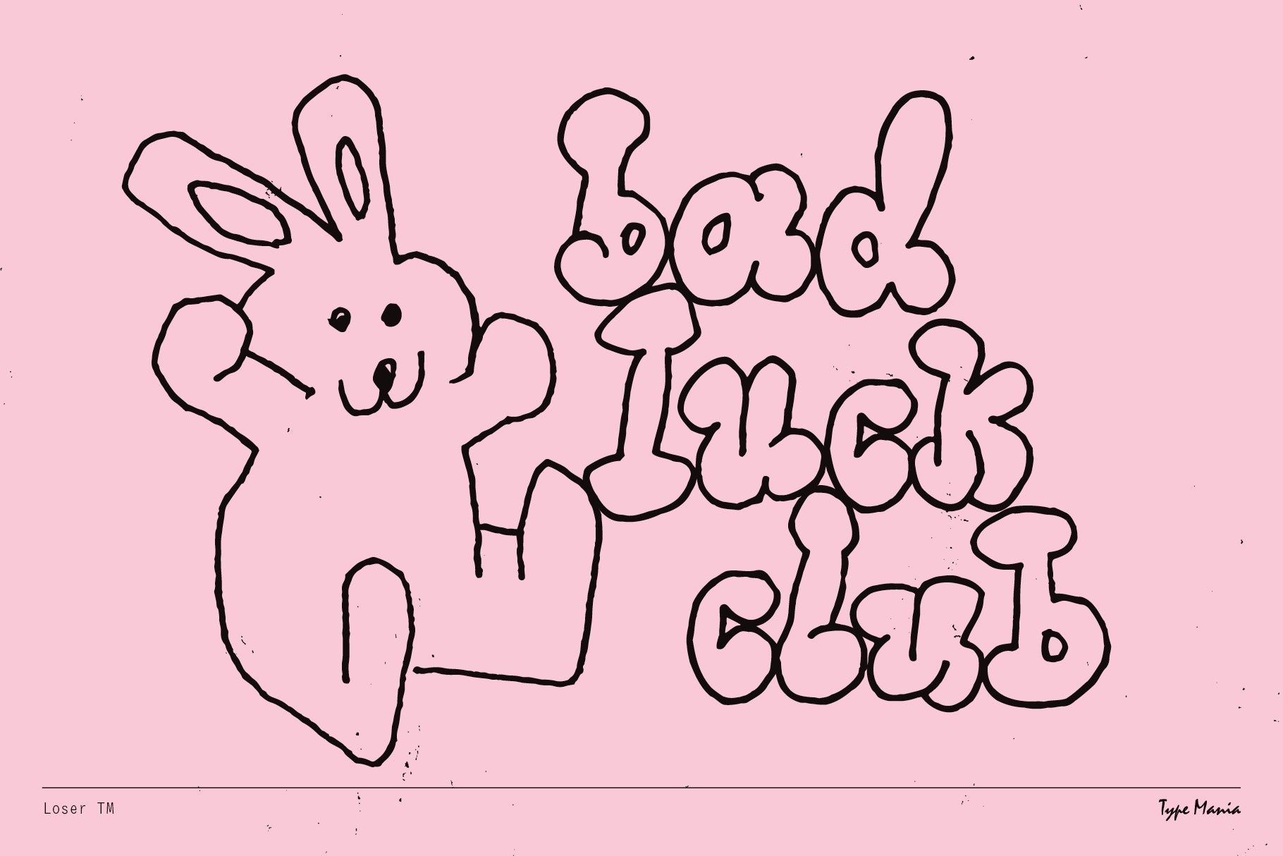Say hello to Loser TM – the scribbled, bubbly font from Type Mania. Whether you’re crafting social media graphics, quirky logos, or personal branding, this font brings a whimsical touch with its bold, rounded letters and handwritten feel. Remember: it’s more important to stand out than to blend in.