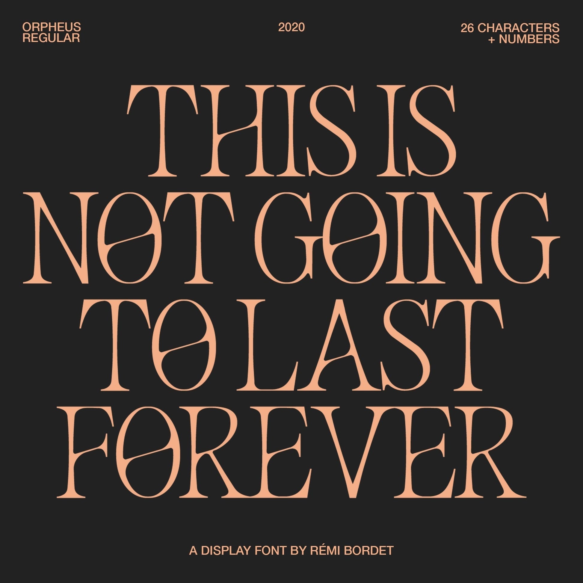 Orpheus is an elegant display face with soft rounded elements which provide a nature ink bleed look. Great for intricate apparel detailing and poster designs.