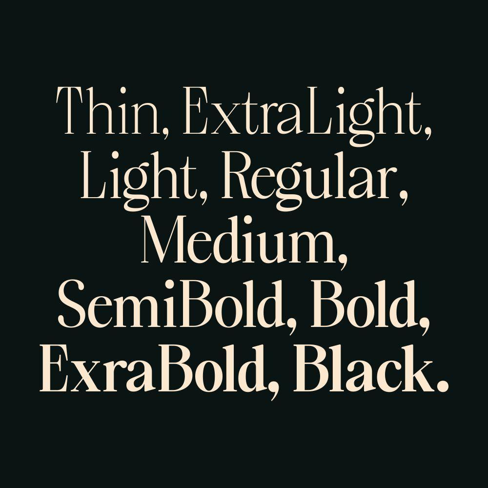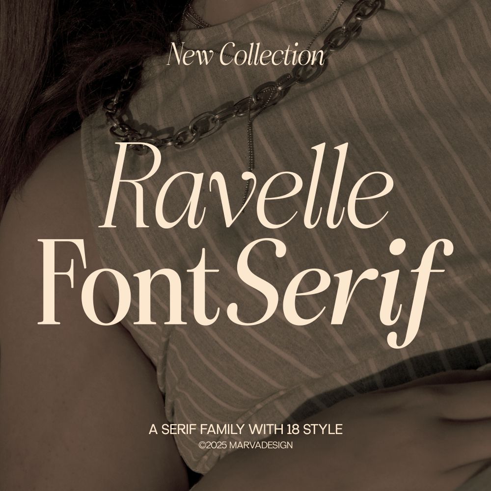 Introducing New Family Serif Font Ravelle Font Serif is an elegant and sophisticated serif typeface that combines classic design with modern aesthetics. It features a graceful balance of thick and thin strokes, delivering a refined and timeless appearance. This font family includes a variety of weights ranging from Thin to Black, offering versatility for diverse design applications. Characterized by subtle curves and sharp serifs, Ravelle exudes a sense of luxury and professionalism. Its high contrast and delicate details make it suitable for editorial designs, branding, invitations, and other premium projects. The font's stylish and expressive nature enhances readability while maintaining a distinctive visual appeal. With 18 different styles, Ravelle provides flexibility in creating unique typographic compositions, making it an ideal choice for designers seeking both elegance and functionality.