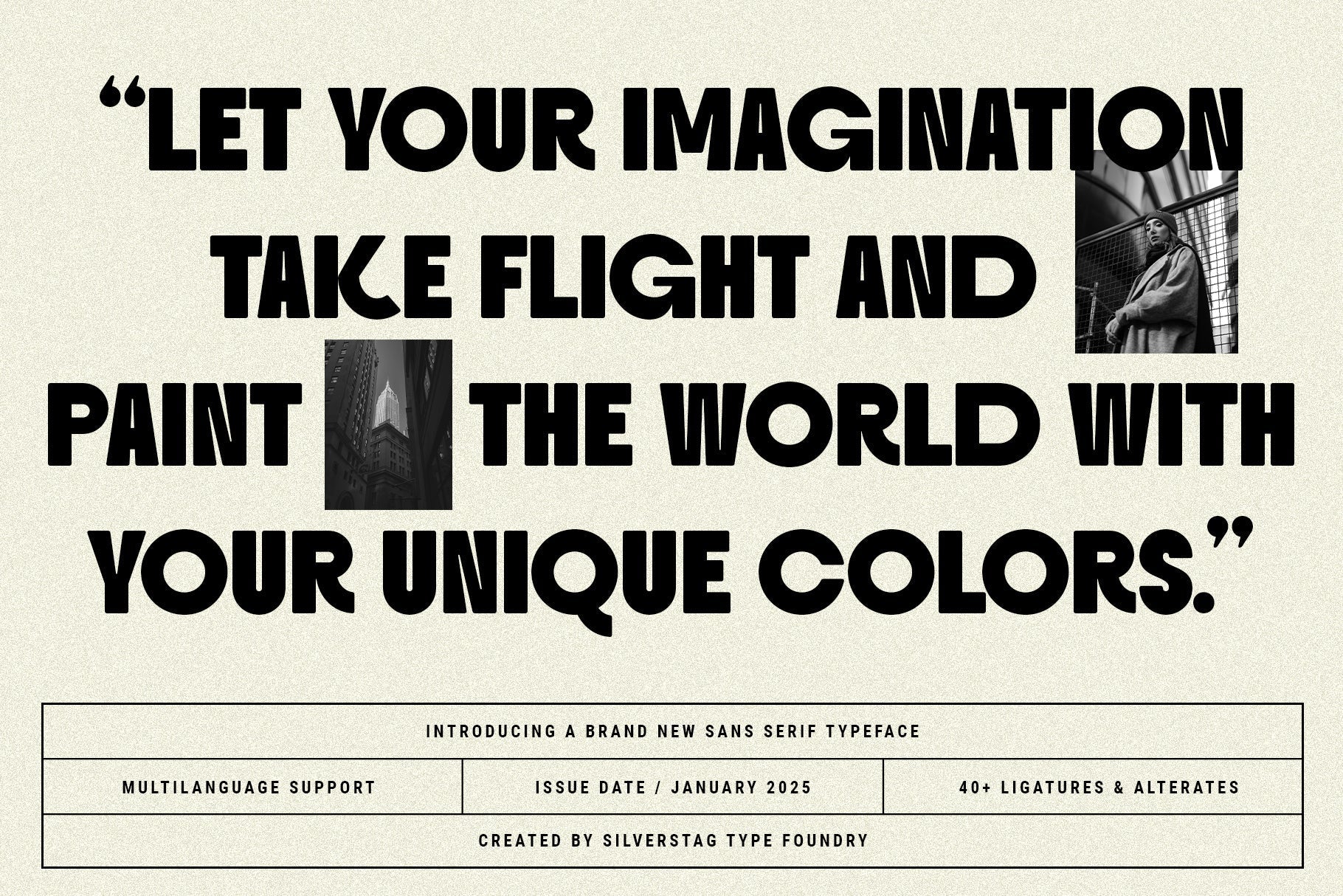 Transform your designs into works of art with SLTF Skybury. Perfect for modern branding, editorial design, advertising, or any creative project where boldness meets sophistication.